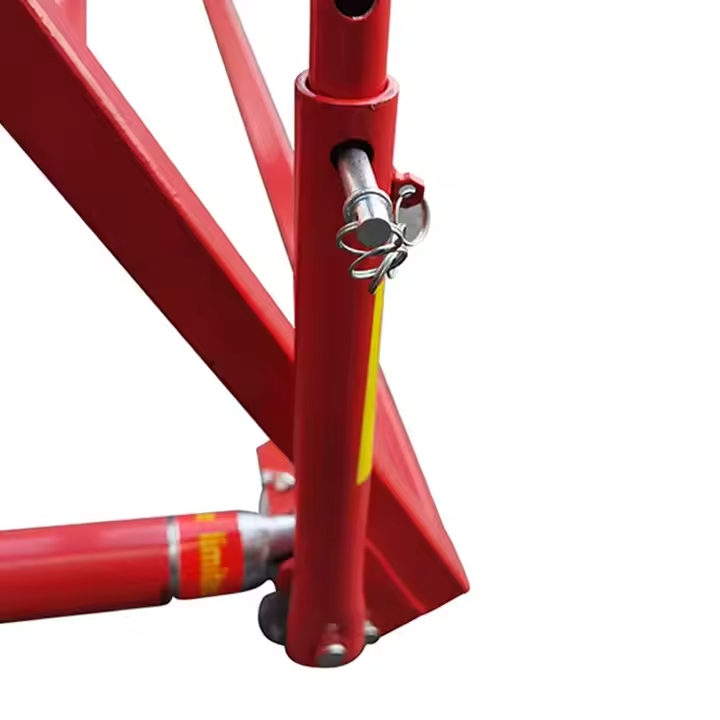 Traba de seguridad con apoyo de dos ruedas al suelo.