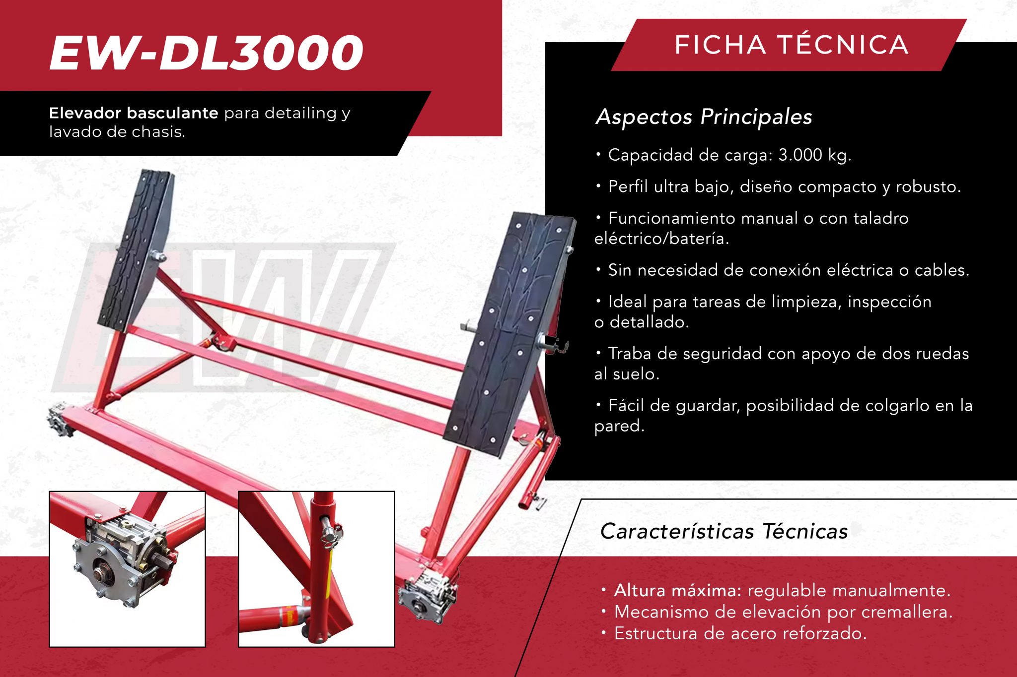 EW-DL3000 – Elevador basculante para Detailing y Lavado de Chasis