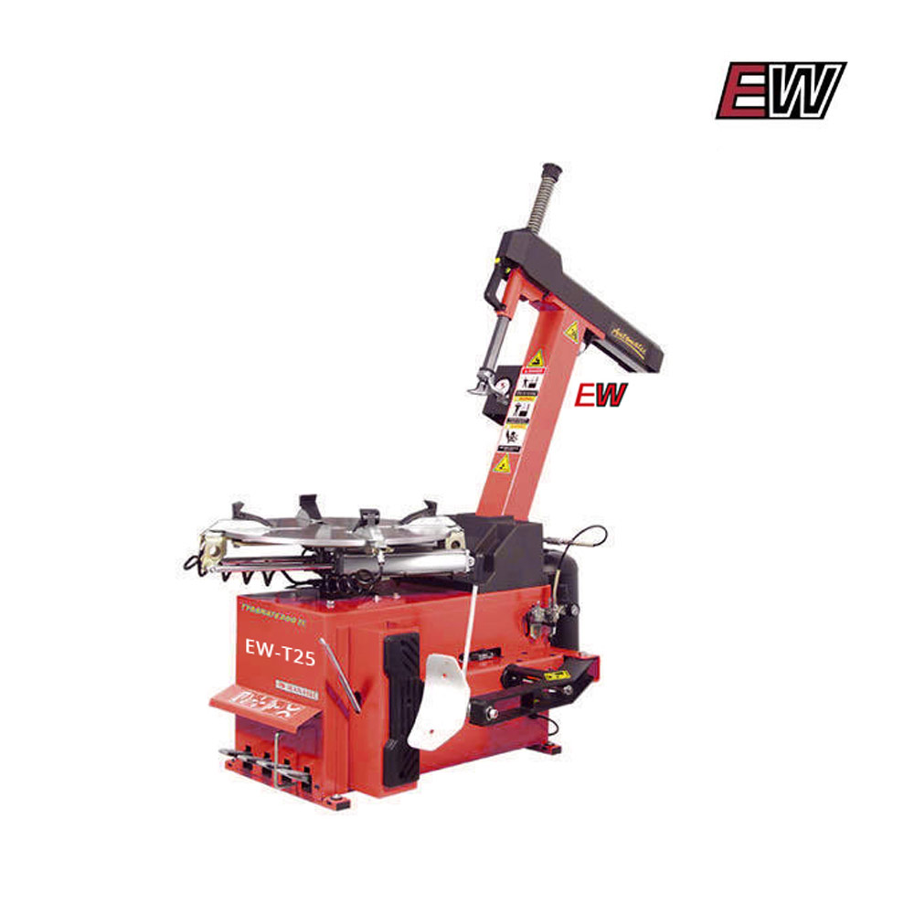 La desmontadora de neumáticosEW-T25 es la más sencilla de las que cuentan con columna volcable. Pese a no contar con brazo de apoyo multifunción, como las que le siguen, la misma esta construida sobre la misma base. Esto hace que la maquina no solamente comparta componentes críticos (como su motor, su caja reductora, su baja talón, entre otras) sino que además siga manteniendo la sencillez a la hora de utilizarla pero con la confiabilidad y robustez de las maquinas mas completas.<br>