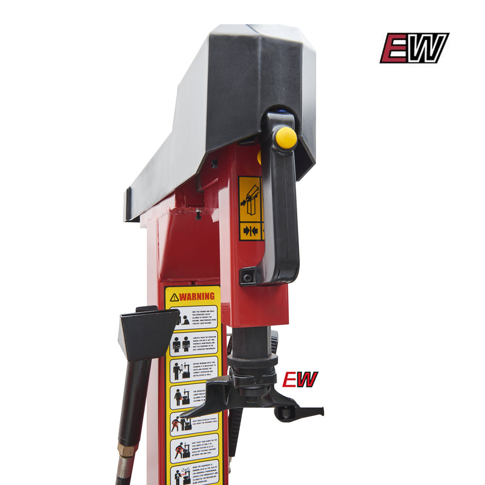 La desmontadora de neumáticos EW-T25+HL360R es una maquina diseñada exclusivamente para trabajar con neumáticos de bajo perfil y del tipo RUN-FLAT. Sin ninguna duda la incorporación del sistema Leverless hace que trabajar con estos neumáticos se vuelva una tarea sencilla y para la cual no se corre ningún riesgo a la hora de armar o desarmar estos neumáticos tan específicos. El sistema le permite al usuario trabajar sin la utilización de la barreta (aunque la maquina igualmente viene con una) permitiendo mitigar la posibilidad de daño de cualquier tipo en la cubierta o en la llanta.
